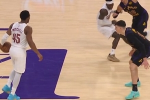 上一篇: 聊啥这么开心!詹姆斯坐在布朗尼旁边说悄悄话 父子俩捂嘴爆笑