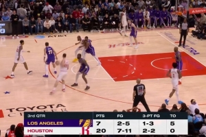 第三节前半段火箭轰出20-7攻击波 造成湖人5次失误&自身0次