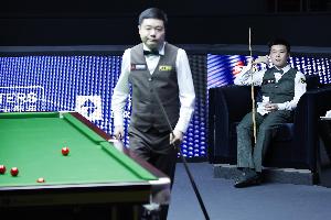 丁俊晖说:“我依然感到有些压力。我试着全身心投入到击球中,集中精力处理好每一颗球。目前看起来效果不错。”
